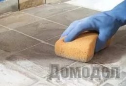 Следующим действием будет сама затирка. Нужно окунуть губку для затирки в воду и резкими достаточно быстрыми движениями затирать швы. Естественно все это нужно выполнять в защитных перчатках и как можно чаще смачивать губку в воде.