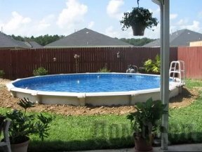 Это самый бюджетный из всех вариантов бассейн. Обычно он компактен, его диаметр не превышает 5 метров. Он легко собираются и прост в обслуживании. Дно и стенки такого бассейна выполнены из пленки ПВХ. Надувная деталь этого бассейна - это верхнее кольцо.
