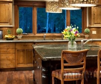 Логично, что начало создания стиля кантри на кухне начинается не с покупки мебели, а с отделочных работ. Материалы должны быть натуральными и качественными. Для отделки пола можно использовать несколько вариантов - камень, натуральная доска, и плитка. Эти материалы отличаются по цене, так что каждый может выбрать подходящий материал. Заменить массив может паркет или ламинат. Разнообразие отделочных материалов настолько велико, что даже самое современное покрытие внешне идеально вписывается в кантри интерьер.