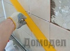 Следующее действие будет по выравниванию стен. Поверхность, имеющая большие искривления, нуждается в штукатурке по маякам. Если заметны небольшие неровности, можно выровнять их только местами влагостойкой штукатурной смесью. Когда стены очищены и заштукатурены, требуется подождать их полного высыхания и нанести грунтовку для повышения прочности кафеля.