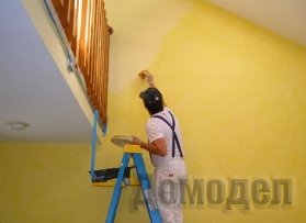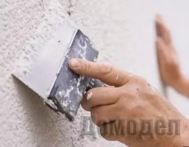 По завершении высыхания поверхностей теркой и шпателем наносят предварительно подготовленную штукатурную смесь. Небольшое количество раствора шпателем кладут на терку, которую, в свою очередь, прикладывают к стене. Покрыв всю поверхность штукатурной смесью, ее оставляют на некоторое время для высыхания. Просушенную стену хорошо смачивают водой, после чего повторно наносят раствор, но уже с использованием специального алюминиевого правила шириной 150 см.