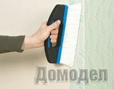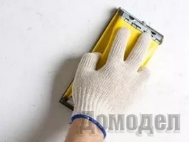 Дождавшись высыхания смеси, покрытие зашкуривают, после чего шваброй или щеткой удаляют образовавшуюся на поверхностях пыль. Стену еще раз покрывают грунтовкой. Далее подготавливают финишную шпаклевку, после нанесения и высыхания которой поверхности грунтуют составом глубокого проникновения.