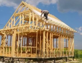 К возведению каркаса можно приступить только по готовности основы. Что же касается непосредственно строительства каркаса, дело это довольно простое. Все что вам надо сделать, это установить стойки и соединить их обвязкой. Потом надо заполнить получившиеся секции, а также обустроить основу под проемы. Далее строительство крыши, а также потолочного и напольного перекрытия.