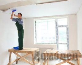 Построив перегородки, приступаем к выравниванию потолков. Первым делом, нужно потолки загрунтовать. Так как потолки выполнены либо плитами перекрытия, либо монолитом, впитывающая способность их очень мала, поэтому воспользуемся специальными грунтовками для слабовпитывающих поверхностей - "Бетоноконтакт Кнауф" или аналогичными других фирм производителей. Время, за которое грунтовка высыхает и принимает свои свойства около 4 часов. После высыхания грунтовки устанавливаем на потолок оцинкованные 10-милиметровые маяки, после чего можно начинать штукатурить.