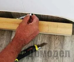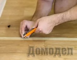 Клеить линолеум не сложно. Самое главное – правильно раскроить материал. Для этого понадобится очень острый нож. Двигаться при раскрое надо вдоль стены. Если линолеум будет наклеиваться, между ним и стеной оставляется зазор шириной примерно 1 см. При обрезке краев линолеума необходимо оставить примерно 2 см от стены.
