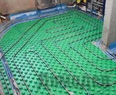 Основное преимущество водяного пола в том, что он экономичен в затратах на монтаж. Процесс установки заключается в приваривании труб к системе горячего водоснабжения или центрального отопления. Также стоит отметить, что такая система совместима с любым напольным покрытием.