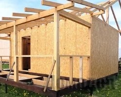 Остальные части стоек после монтажных работ обшиваются при помощи плит ОСП или досок. Чтобы конструкция получилась максимально надежной, мастеру нужно добавить звенья. Стены считаются завершенными, когда установлены дверные и оконные проемы. Для каркасной бани нужно правильно выбрать кровлю. Можно использовать мягкую черепицу, ондулин, профнастил.