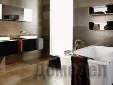 Ванная также создается в стиле хай-тек, в этом помогают различные стройматериалы, к примеру, стекло, камень, металл, дерево и др. Широкой популярностью пользуется мебель из натуральной древесины, этот материал помогает создать ванную в роскошном стиле. Дополняют ванную комнату интересные полотенцесушители, зачастую ставят отопительный прибор. Стоит заметить, что мраморные изделия также используются для выражения этого стиля.