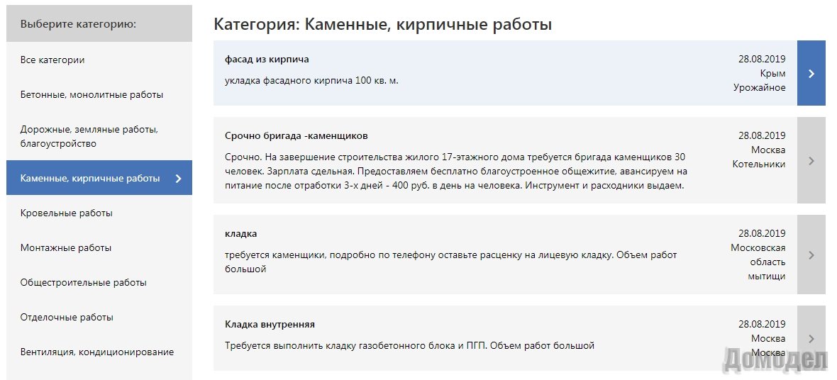 На сайте вы найдете тех субподрядчиков, которые справятся с конкретными работами. У каждого человека есть право подобрать именно то, что ему подходит. Это – малярные, кровельные работы, создание канализационных и отопительных систем, обустройство водопровода и так далее. Вы сможете ознакомиться с полным перечнем работ бригад, если полистаете каталог, предложенный на сайте.