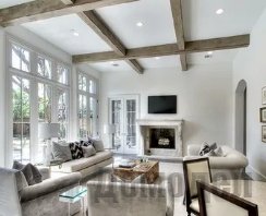 Расположение декоративных балок на потолке, из какого бы материала они не были выполнены, может быть любым. Отлично смотрятся как параллельные друг другу элементы, так и пересекающиеся. Форма также может быть любой. Чаще всего используют балки прямоугольного или квадратного сечения. Однако круглые бревна так же не менее эстетичны.