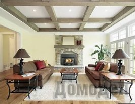 Деревянные тяжелые балки будут выглядеть, конечно, натуральнее всего. Однако обычно их используют только тогда, когда конструкция потолка предполагает наличия дополнительных укрепляющих элементов.
