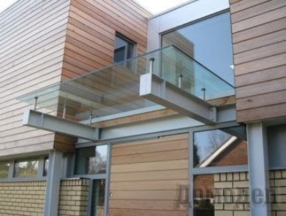 Стеклянные козырьки и навесы — дизайнерский элемент, демонстрирующий статус владельца и его хороший вкус. Козырьки устанавливаются над входом, навесы можно размещать по периметру строения.