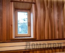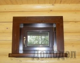 Как правило, оконные конструкции из ПВХ-материалов используются только в гостевой комнате и душевой, ведь не все пластиковые окна способны выдерживать высокие температурные режимы. Также под воздействием высокой температуры пластик выделяет токсины, которые могут оказывать негативное влияние на организм человека. Именно поэтому, многие отдают предпочтение именно продукции из дерева.