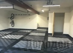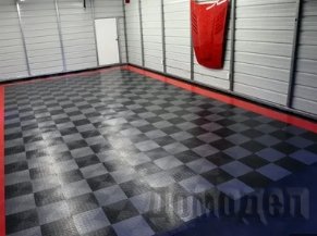 - Кафельное или модульное покрытие. Кафельная плитка, посредством специального покрытия из поливинилхлорида, может быть идеальным вариантом для напольного покрытия в гаражном помещение. Кафельная плитка отлично выдерживает большие нагрузки;