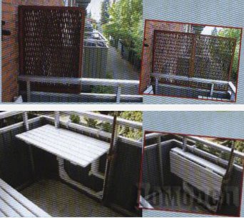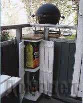 Гриль привинчен к доске, закрепленной за балконом, поэтому не занимает места. Откидное ограждение закрывает балкон от соседей. Все изготовлено из обрезков стройматериалов, поэтому недорого. А если вам требуется хороший san-tekhnika.ru тогда рекомендую вам этот интернет-магазин san-tekhnika.ru.