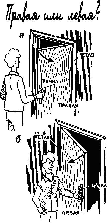 - Если встанете в дверном проеме лицом к петлям, а спиной, естественно, к замку и обнаружите, что дверь открывается вправо, то она правая, если влево — левая.