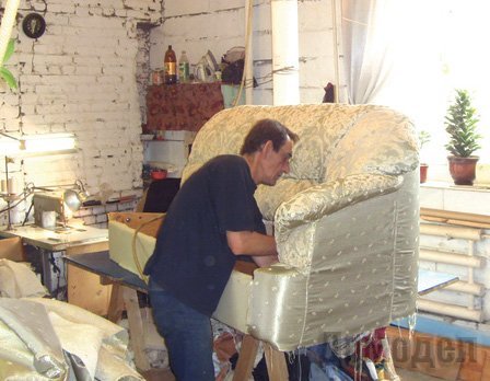Затем реставрируется деревянный каркас мебели (при необходимости). На него укладывается новый прокладочный материал (синтепон, поролон и др.). И, наконец, поверх прокладки натягивается новая обивка (чехлы). При помощи мебельного степлера и крепежных элементов обивка закрепляются. Новую мягкую мебель можно красиво декорировать тесьмой, разноцветными лаками и красками, вышивкой, аппликацией и др.