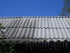 Асбестовый шифер изготавливают из отходов, оставшихся при производстве натурального шифера. Самый дешевый кровельный материал, морозоустойчив, не горит и хорошо выдерживает атмосферные воздействия. К недостаткам относится относительно низкая продолжительность эксплуатации (до 30 лет) и наличие в составе вредного асбеста.