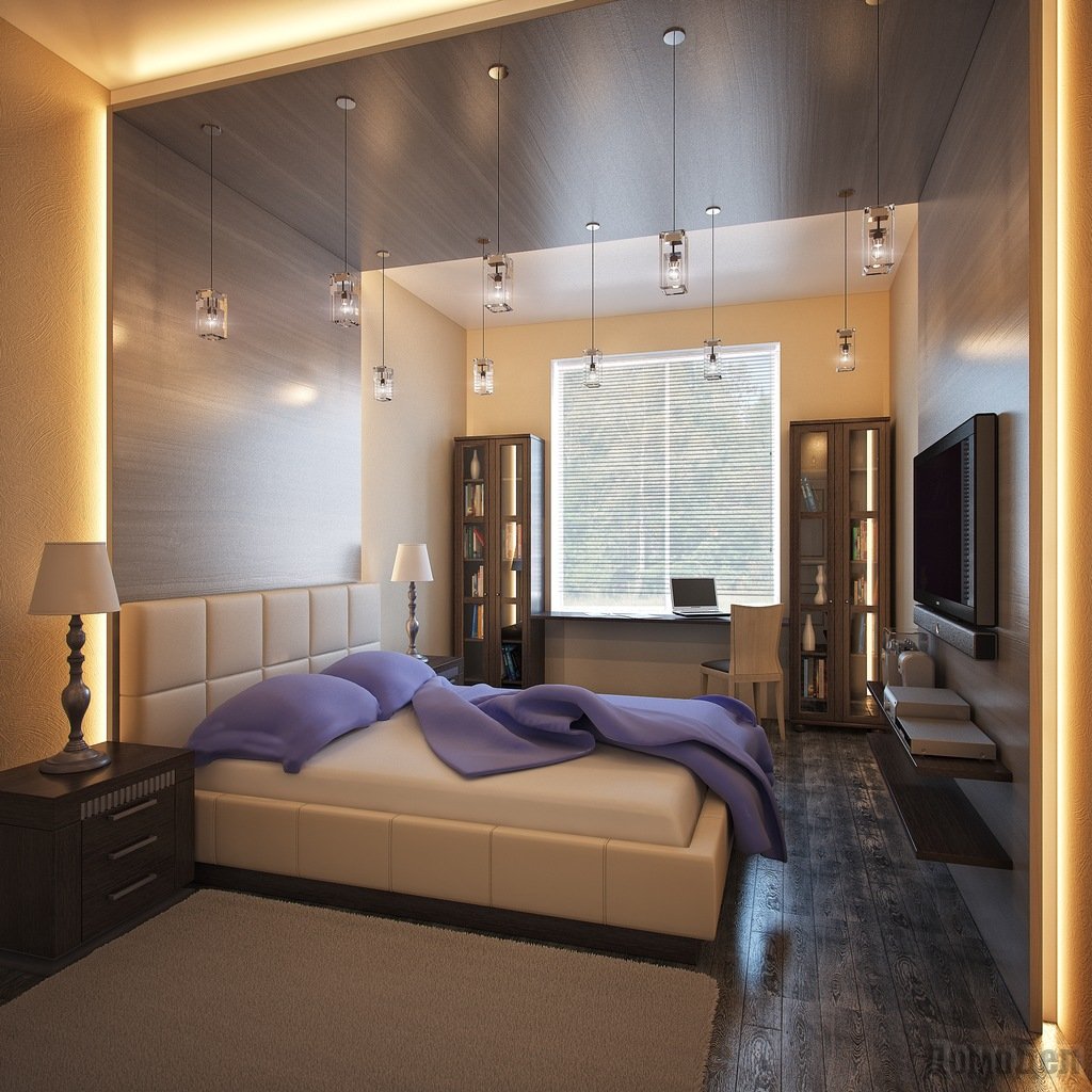 Не стоит отчаиваться, в этом случае можно сделать необычный дизайн потолка или «поиграть» с деталями. В случае если место для шкафа в комнате не остается, проблему может решить кровать-шкаф.