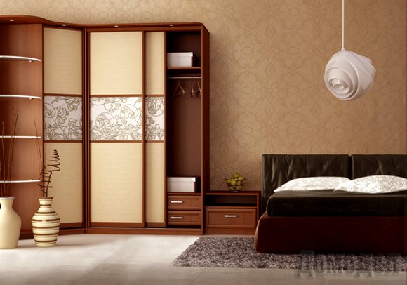 Внешний облик шкафа также немало важен, ведь он будет частью интерьера вашей спальни. При выборе шкафа основное внимание обращается на материал, из которого сделаны раздвижные двери. Двери могут быть изготовлены из тех же плит ДСП или деревянной филенки. В таком случае, цвет и фактура шкафа подбирается под соответствующий дизайн мебели и дверей спальни. Если вы предпочитаете легкость и элегантность, то сделайте выбор в пользу дверей из стекла или зеркала. Нужно отметить, что зеркальные поверхности можно использовать для достижения визуального эффекта расширения пространства спальни.