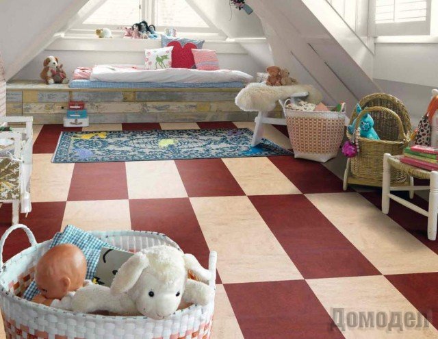 Мариолеум – материал ударопрочный, ему не страшны каблуки и ножки мебели, его жесткость позволяет не бояться даже когтей животных.