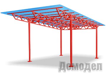 Желательно смонтировать не только продольные балки, но и поперечные. На них ляжет рулонная гидроизоляция. А сверху уже можно будет закреплять листы навеса. Что касается выбора материала, то вполне подойдет профнастил и обычная сталь без рифления.