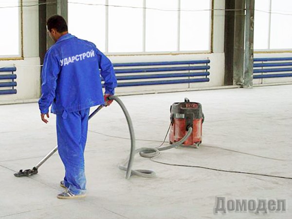 Для начала специалисты убирают все коммуникации и трубы, которые находятся под полом или прикрывают. Если на поверхности пола есть какие-то неровности, то их требуется обязательно устранить. Все неровности срубают, удаляют пыль и грязь.