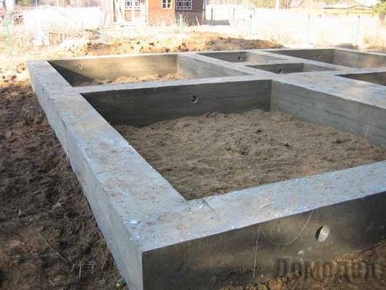 Строительство лучше всего выполнять на неподвижных песчаных или глиняных грунтах. В дальнейшем это позволит избежать его подмывания во время весенних паводков. Для более удобной эксплуатации дома высоту фундамента лучше делать не более 100-150 см.