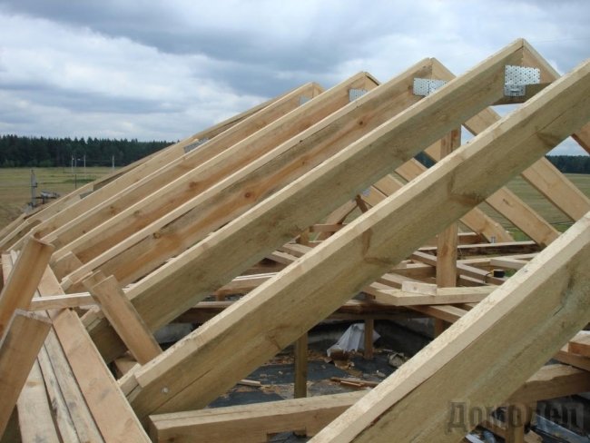 Крыша – это несущая часть дома, она передает нагрузку на все стены, поэтому ставить лучше всего легкую крышу. Для этого отлично подойдет обрезанная доска или брус. Прежде, чем делать крышу в доме должны быть сделаны перекрытия при помощи балок. В качестве балок так же можно использовать доски, в случае, если чердак не будет использоваться, как жилое помещение, и брус, который прекрасно подойдет, если в проекте есть мансарда.