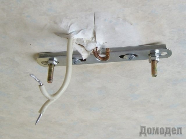 Как правило, любой декоративный стакан скрывает основное крепление люстры. При попадании в пустоты бетонной плиты необходимо обязательно использовать специальные крепления имеющее своеобразное название, Молли. Если запланирована установка и крепёж люстры к основанию потолка используя специальные достаточно прочные монтажные шпильки, то делать это необходимо следующим образом.
