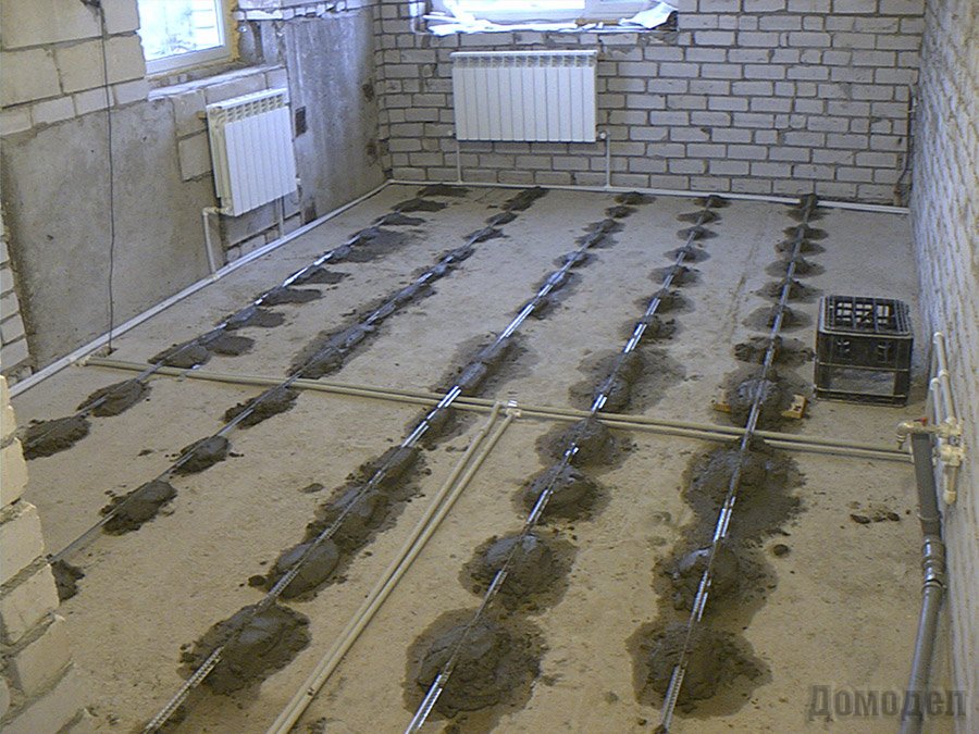 Выполняя эту процедуру, обязательно следует добиться точности, чтобы все имеющиеся метки идеально совпадали. Затем приступаем к заливке раствором пола. Когда строительная смесь полностью высохнет и станет прочной, можно начать укладку ламината.