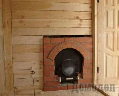 Все элементы печи устанавливаются непосредственно во время кладки кирпича. Над топкой положите чугунную плиту и, если хотите, установите духовку. Прикрепите дверку поддувала и топочную дверь. Асбоцементная труба отлично подойдет для дымовой трубы. Чтобы получить нормальные размеры печи, сделайте стандартную проводку.