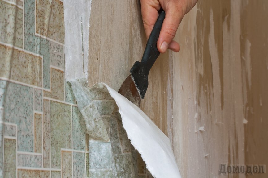 • Бумажные обои смачиваются влажной губкой и аккуратно сдираются, если они отходят плохо, то применяется специальная острая щетка.
