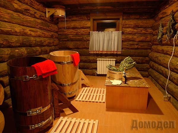 Чаще всего баня состоит из парной площадью около 8м2, предбанника и прихожей-тамбура. Строительство нужно проводит так, чтобы рационально применить общую площадь. Для этого двери из предбанника и из парилки должны выходить в прихожую. Комната для раздевания имеет среднюю площадь 5м2 и содержит в себе окно и скамьи. Парилку лучше всего сооружать в форме квадрата. Чтобы снизить потери пара и тепла, нужно устраивать в это отделение дверь с низкой коробкой и высоким порогом.