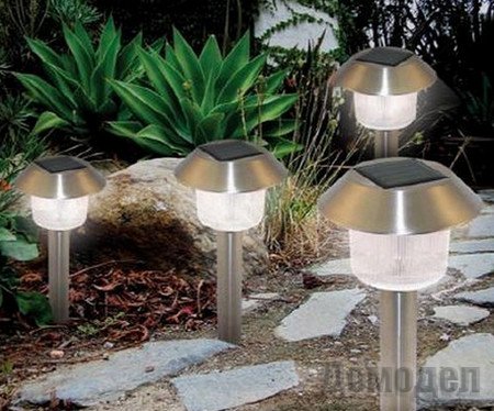 С появлением новых технологий стало возможным использовать светильники на солнечных батареях. Они целый день заряжаются, а ночью освещают сад с помощью накопленной электроэнергией.