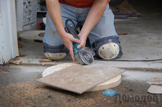 А вот при использовании болгарки с этим же алмазным диском, возможна и прямая и фигурная нарезка плиток. Но после разреза этим инструментом требуется шлифовка краев плиток.
