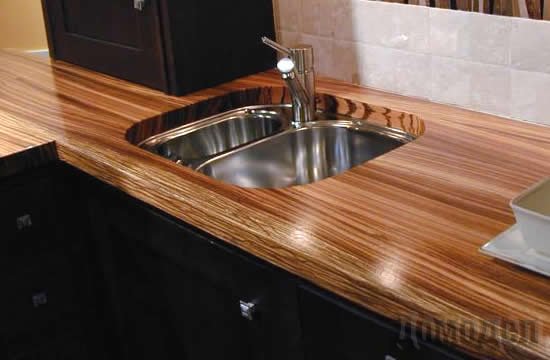 Столешницы из массива дерева почти не делают, если это не спецзаказ. Обычно для этого используют ДСП со специальной пропиткой и покрытием из акриловой смолы. Такие изделия не боятся повышенной влажности, горячего пара, высокой температуры. Такие столешницы не истираются и не царапаются. Но их довольно сложно монтировать.