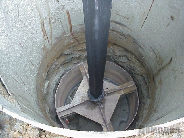 Процесс бурения проходит следующим образом. Сначала бурятся верхние слои, и опускается колонна, бурение происходит до тех пор, пока не пробурят водоносный пласт. После этого опускается эксплуатационная колонна, происходит прокачка скважины. Затем устанавливают фильтры и насос, железобетонные кольца, крышка.
