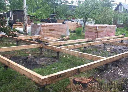 Собственно, фундамент выполняется достаточно просто: на углах дома и в точках пересечения будущих стен внутри, а также по длине стены в грунт ввинчиваются сваи. Шаг их входа должен колебаться в пределах от одного до трёх метров, не более. Поверху сваи обрезаются на одном уровне и закрепляются деревянными или металлическими балками, создавая единый ростверк. Ростверк и поверхность земли разделяет некоторое пространство, которое используется для проветривания.
