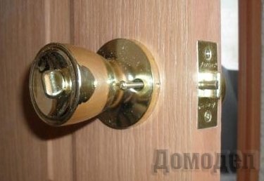 Теперь вставляйте замок, закручивайте саморезы, обычно их два с торцевой стороны. Вставьте сердцевину, закрепите болтом. Наденьте и закрепите ручку. А на дверной коробке напротив защёлки нужно сделать углубление и прикрутить металлическую накладку.