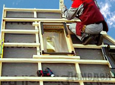Необходимо держать ориентир на рейки обрешетки и если имеются, балки, которые установлены горизонтально, то нижнюю часть окна лучше крепить непосредственно на них.