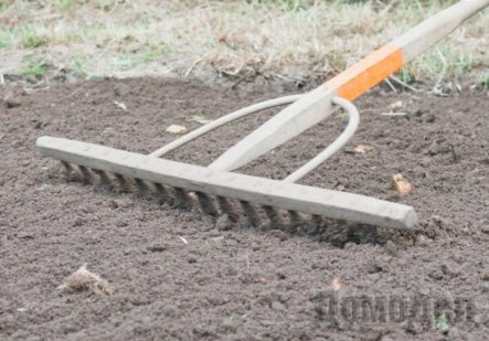 - Далее верхний слой почвы выравнивают граблями, проходя его крест- накрест.