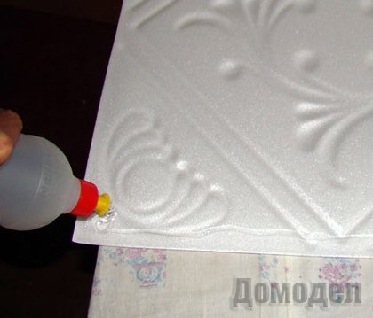 - клеим потолочную плитку.