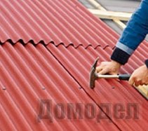 Первый лист укладывают на противоположном крае от направления ветра, вначале нужно просто положить и разровнять материал, а затем можно прикреплять его к обрешетке, пользуются гвоздями для ондулина, на них имеются прокладки и большие шляпки, чтобы дыры были плотно закрыты и не пропускали воду. Для одного листа понадобиться двадцать гвоздей, чтобы распределить их ровно, можно привязать веревку и прибивать по линии. Перед тем как делать крышу, нужно установить элементы, которые удерживают желоб для ухода воды.
