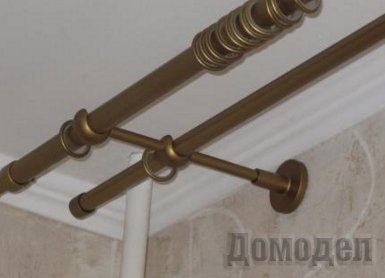 - Карнизы для занавесок или оконные — стержни крепятся непосредственно к оконной раме. Изготовляются плоского или круглого сечения. Некоторые модели позволяют регулировать длину. Стержни для занавесок можно легко закрепить на крючках.