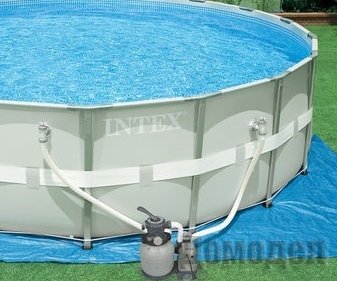 Большинство моделей таких бассейнов, а если это ещё и большой размер, имеют в наличии большую комплектацию: вместе с фильтром будет идти защитный тент, который нужно устанавливать над бассейном; лестница, покрытие для бассейна, которое будет защищать его и специальный комплект для того, чтоб чистить бассейн.