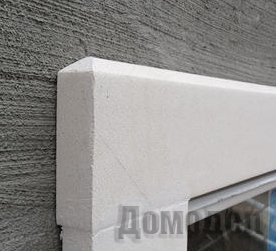 - Поклейка пенопласта. Внутренняя сторона пенопластовой полосы намазывается клеем и прикладывается к откосу. Каждый фрагмент необходимо установить строго по уровню, регулируя горизонтальность и вертикальность степенью прижатия полосы. После высыхания клея иногда закрепляют пенопластовые полосы дюбелями, просверлив отверстия в нескольких местах по периметру прилегания. После этого необходимо заделать все стыки прилегания с помощью шпаклевки.