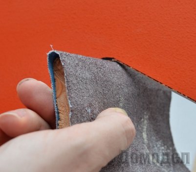 - Материал нужно положить на ровную поверхность, при этом ненужная сторона должна находиться на краю этой поверхности.