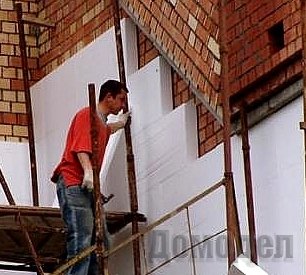 Утепление многослойное – утеплитель размещается снаружи и облицовывается кирпичом. Минус такого утепления – сложность в исполнении, т.к. подходит только для новостроек. Для уже построенных зданий, придется усиливать фундамент.