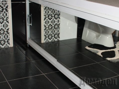 Раздвижные экраны наиболее удобные и функциональные. Само изделие состоит из рамки, изготовленной из металла, направляющих, закрепленных на ней, а также раздвижных дверей. Такой вариант подходит больше всего тем, кому требуется постоянный доступ под ванну, например, с целью хранения вещей. Главным недостатком таких конструкций можно назвать не слишком высокое качество при явно завышенной цене. Технология монтажа таких экранов такова, что при неаккуратном движении есть шанс сбить такое изделие с места.